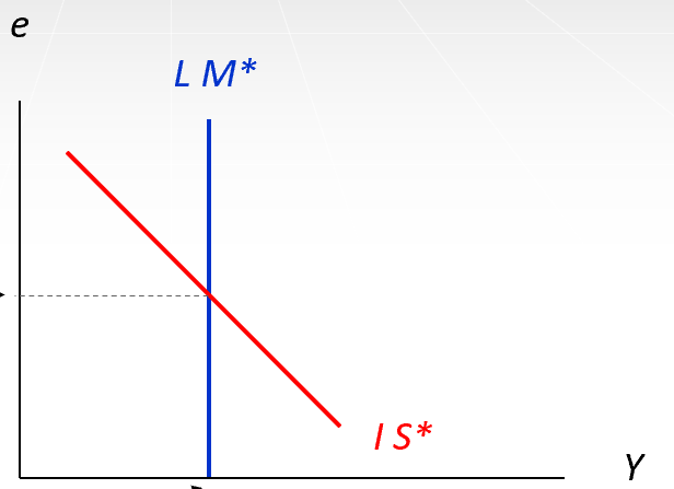 - IS: Y = C(Y-T)+I(r*)+G+Nx(е)