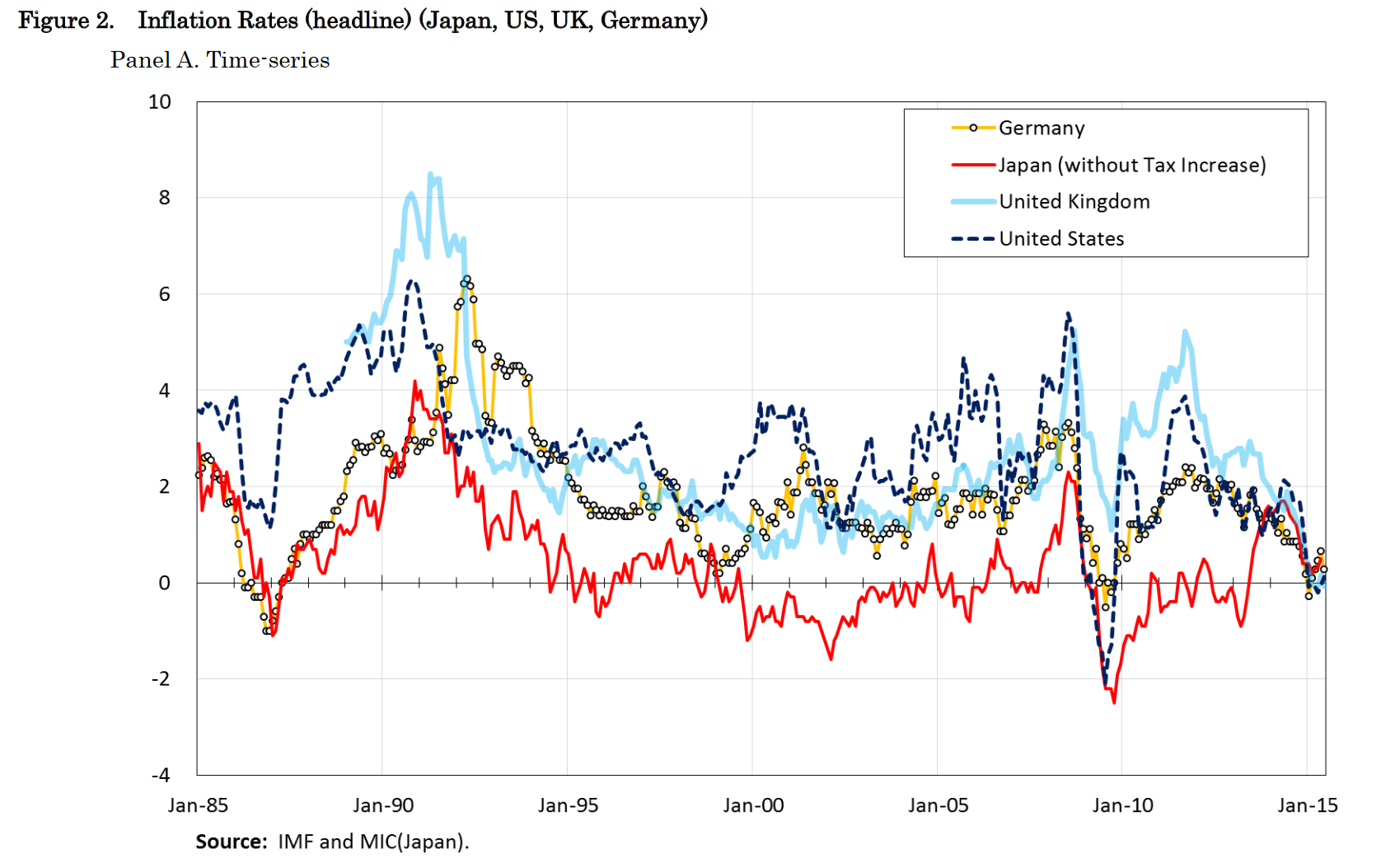2013-2015,是日本政策全力躲避通缩陷阱的时期,安倍上台,任命Kuroda,是通胀目标制的信徒。放出安倍三支箭
